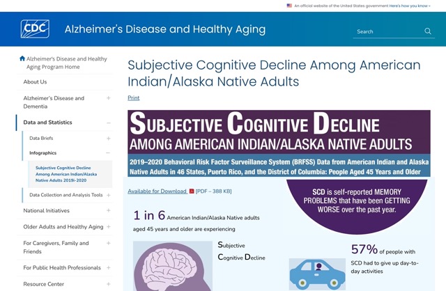 1 in 6 American Indian/Alaska Native adults experience subjective cognitive decline. Check out the tailored brain health and caregiving resources below for more information:
